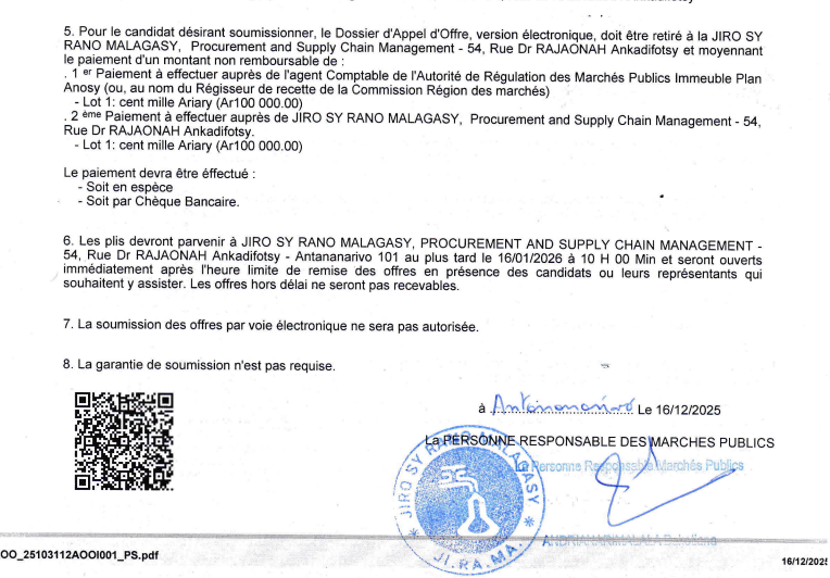 Avis d’appel d’offres International N°AOI N°01/2026/DC2/IT10 Prestations à fournir pour les travaux IT en sept lots