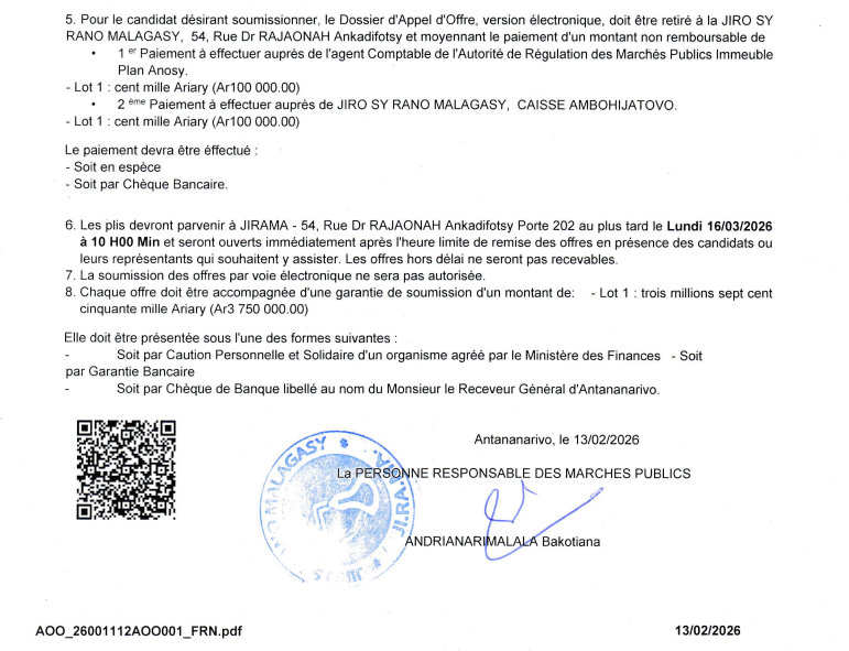 Avis d’Appel à Manifestation d’intérêt N°AMI 98 362/DAOO-2026/DG/PRMP/UGPM-M : Commissariat aux comptes pour 03 exercices de la JIRAMA