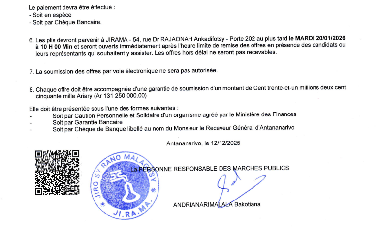 Avis d’Appel d’Offres Ouvert International N°PAAEP – WJIR-T-023-25 – TRAVAUX DE REALISATION DE VINGT ET UN (21) FORAGES DE PRODUCTION D’EAU POTABLE DANS LES VILLES DE MAHAJANGA, ANTSIRANANA ET ANTSIRABE