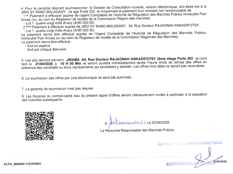 Avis de Consultation et d’appel d’offres N° 98 336/DAOO CC-2026/DG/PRMP/UGPM-M : Fourniture et livraison de Pneus Publié le :3 avril 2026 Avis-dappel-doffre-98-336-MTélécharger