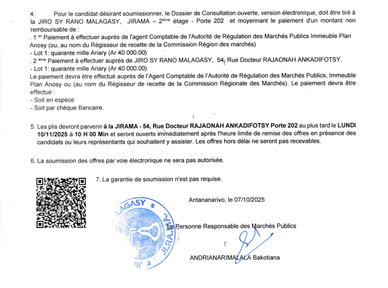 Avis de Consultation Ouverte N° 98 276/DC-2025/DG/PRMP/UGPM/M portant Nettoyage des sites de la JIRAMA
