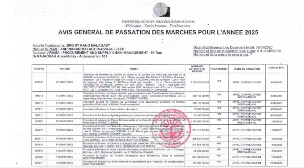 Avis Général de Passation des Marchés AGPM 2025 Mise à Jour N°7 Activité Electricité Publié le :2 octobre 2025 AGPM-2025-Mise-a-Jour-N°7-ELECTélécharger