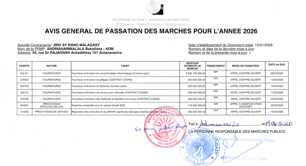 Avis Général de Passation des Marchés (AGPM) MAJ N°001 2026- ADM Publié le :2 avril 2026 AGPM-MAJ-001-2026Télécharger