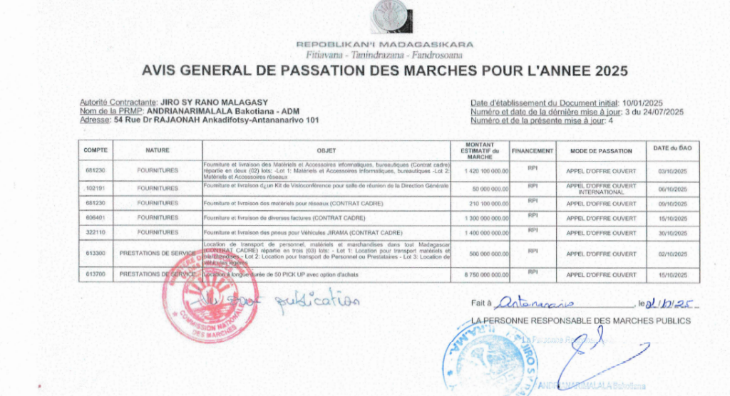 Avis Général de Passation des Marchés (AGPM) MAJ N°004- 2025- ADM Publié le :2 octobre 2025 AGPM-MIXTE-MAJ-4Télécharger