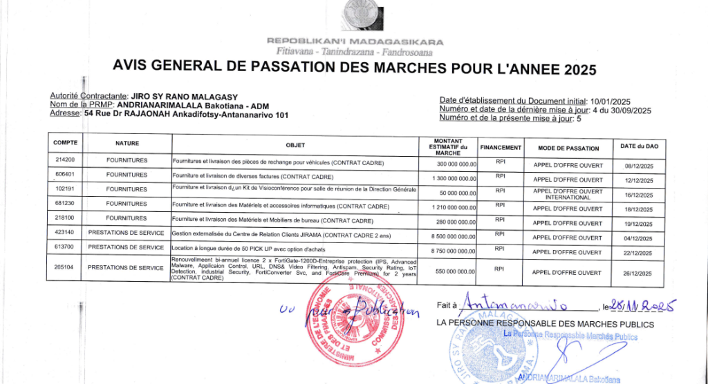 Avis Général de Passation des Marchés (AGPM) MAJ N°005- 2025- ADM Publié le :2 décembre 2025 AGPM-MIXTE-MAJ-5Télécharger
