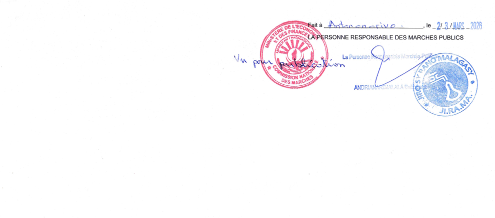 Avis de Modification relative à l’avis d’appel d’offre N° 98 321/DAO CC-2026/DG/PRMP/UGPM-M : Fourniture et livraison des pièces détachées pour véhicules et éléments filtrants