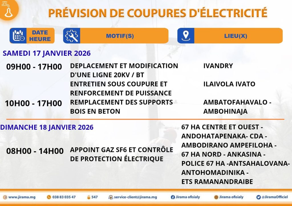 Prévisions de coupures du 16 au 22 janvier 2026 venant de la Direction RIA Publié le :14 janvier 2026