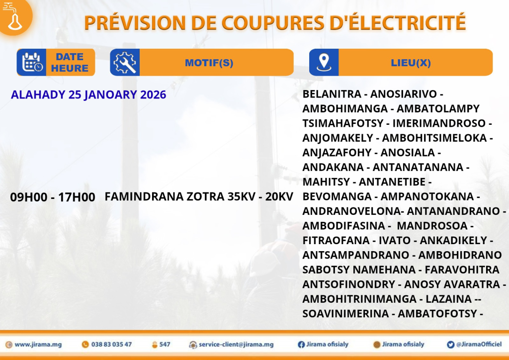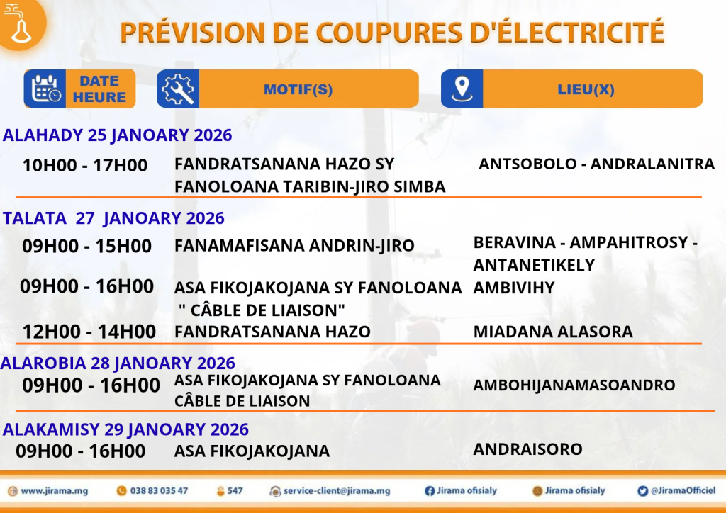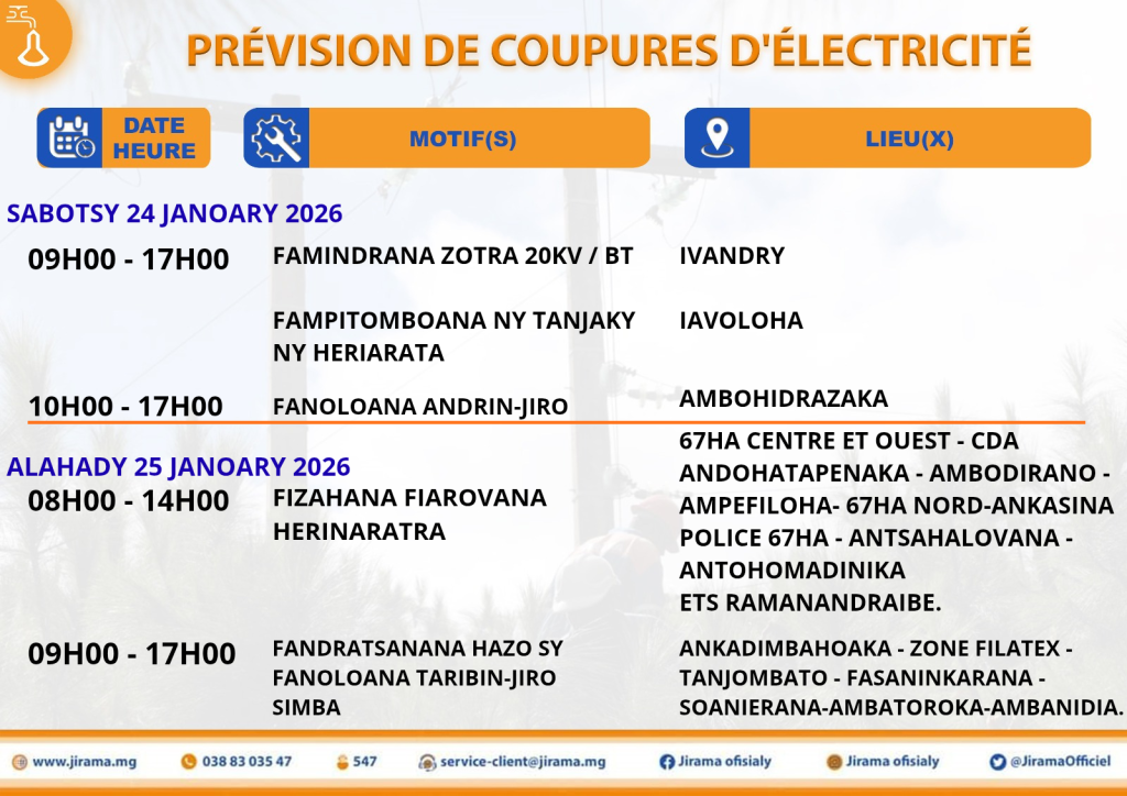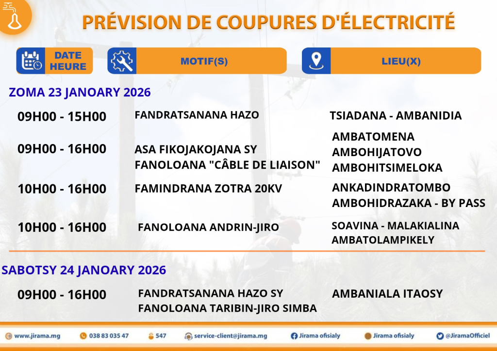 Prévisions de coupures du 23 au 29 janvier 2026